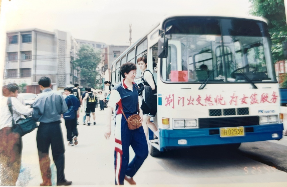▲1999年5月25日,到達(dá)荊門(mén)石化體育館。遠(yuǎn)處看女藍(lán)隊(duì)員走過(guò)公交車(chē),個(gè)頭真的高。